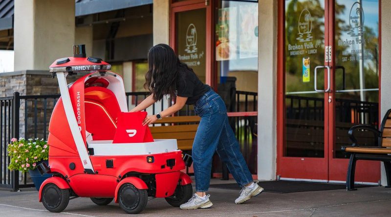Американский сервис доставки еды DoorDash создал огромного робота-доставщика Dot — с мигалкой и разгоном до 33 км/ч.