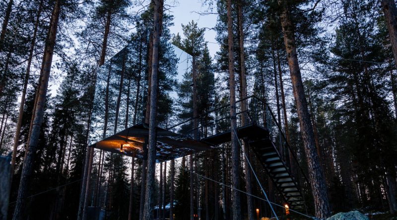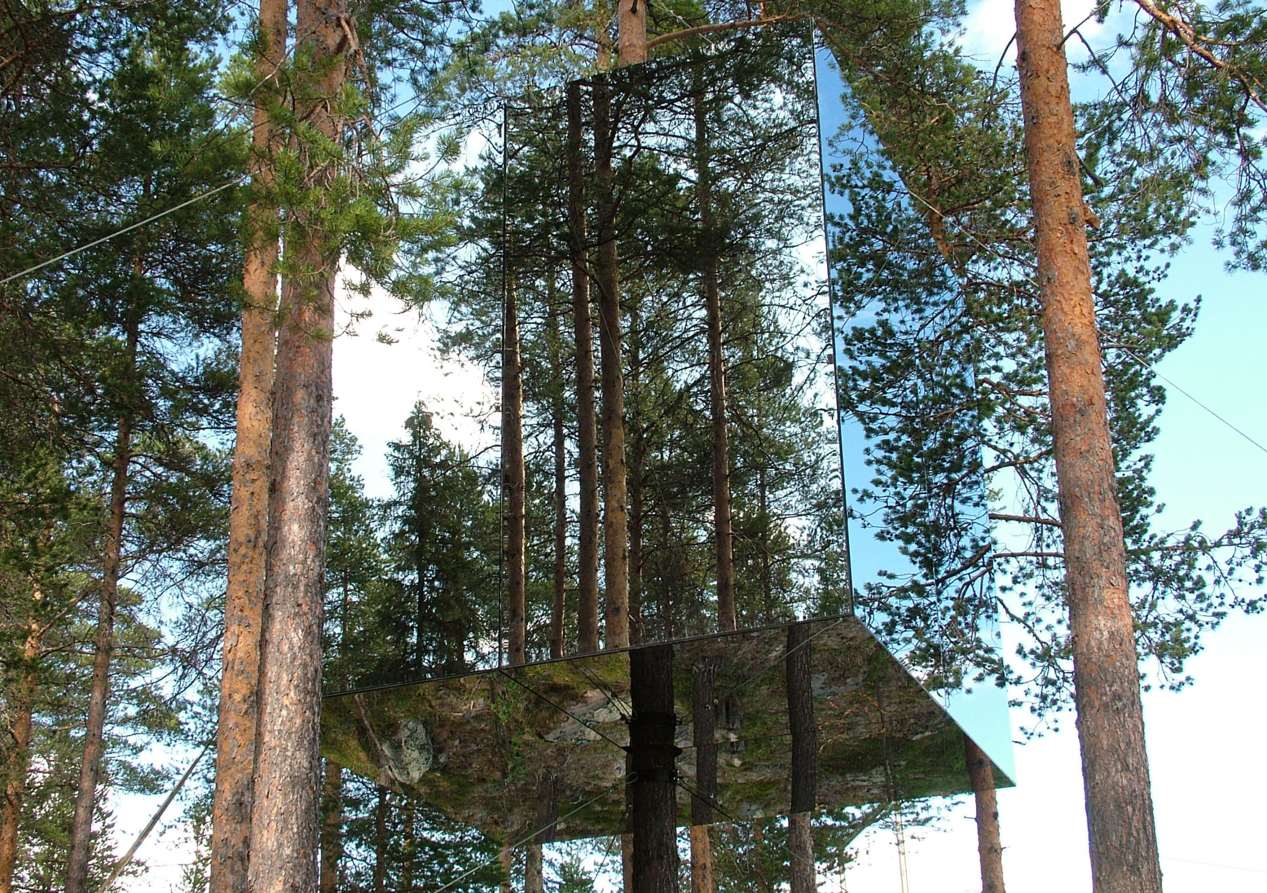 В Швеции сдают «невидимый» куб на дереве — он полностью покрыт зеркальными панелями и буквально сливается с окружающим лесом.