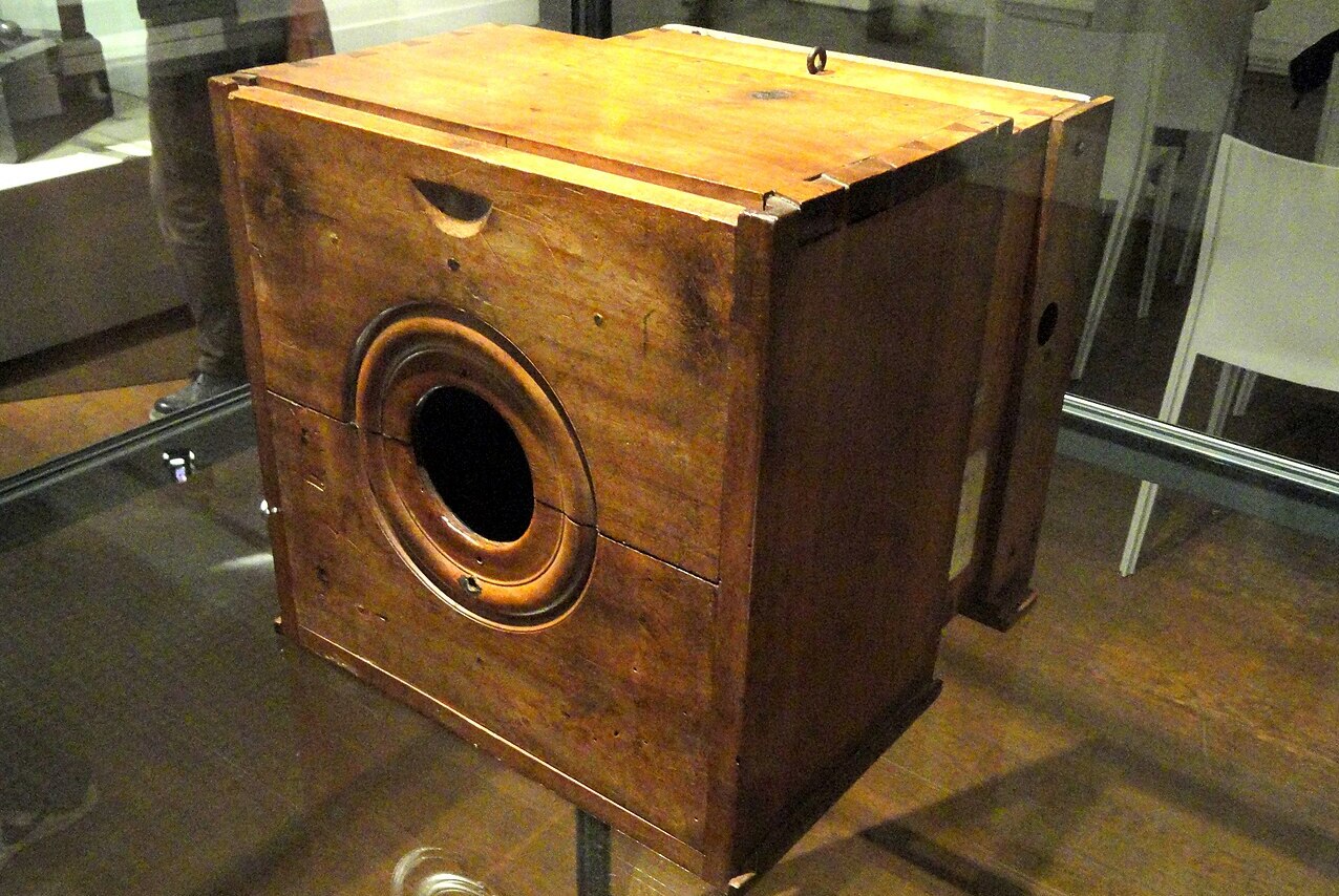 Изображение получил французский изобретатель Жозеф Ньепс в 1826 году, используя придуманный им метод гелиографии: он покрыл оловянную пластину битумом и поместил в ящик с отверстием у окна на несколько дней, после чего промыл смесью из лавандового масла и растворителя.