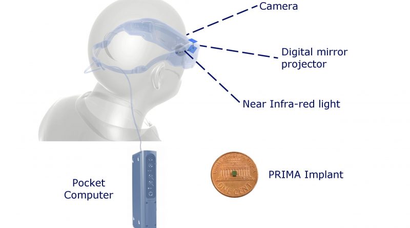 Чип размером 2×2 мм вживляется под сетчатку глаза и работает в паре с камерой на очках. В ходе года клинических испытаний 84% пациентов с ним стали видеть гораздо лучше — в таблице проверки зрения они смогли прочитать на пять строк больше.