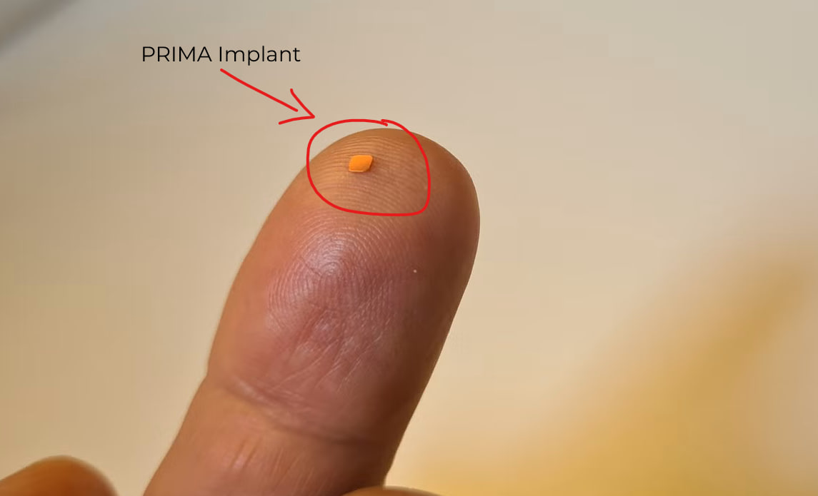 Чип размером 2×2 мм вживляется под сетчатку глаза и работает в паре с камерой на очках. В ходе года клинических испытаний 84% пациентов с ним стали видеть гораздо лучше — в таблице проверки зрения они смогли прочитать на пять строк больше.