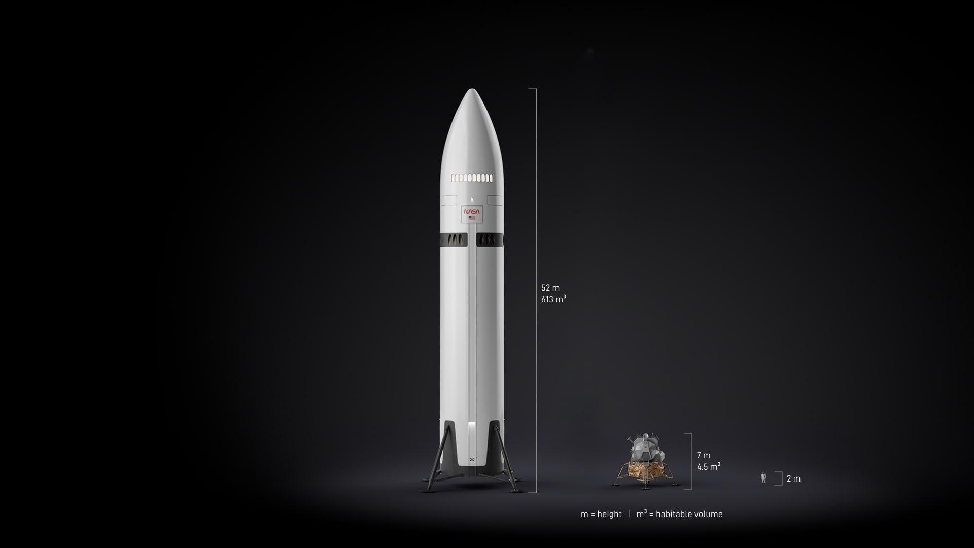 SpaceX показала новую версию ракеты Starship для отправки астронавтов на Луну — её посадочный модуль в семь раз выше «Аполлонов», а внутри в 136 (!) раз больше места.