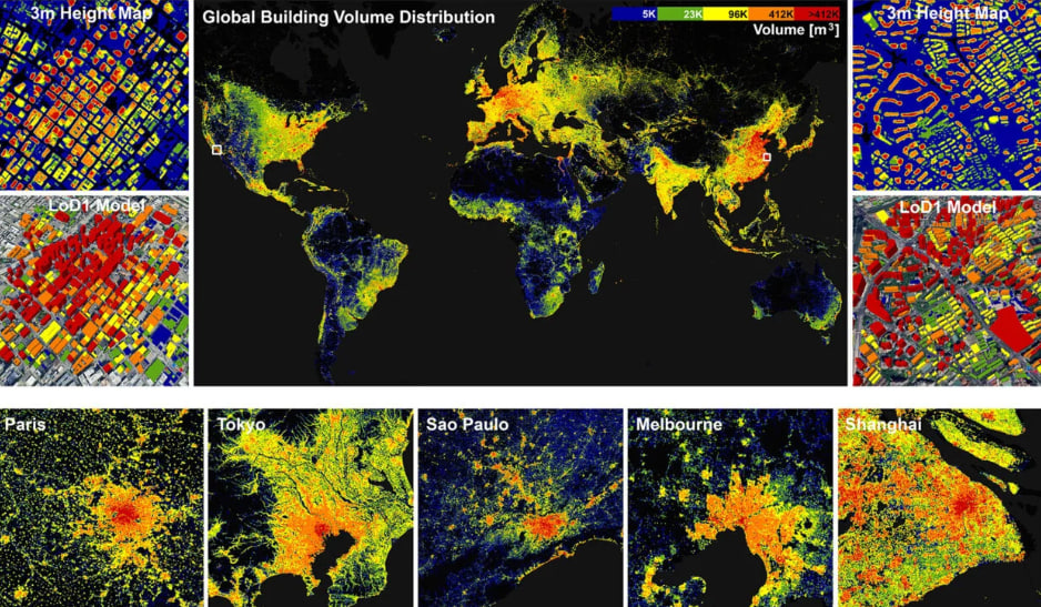 Ученые Мюнхенского университета создали первую в мире 3D-карту всех зданий на планете. Она включает объёмные модели 2.75 млрд построек.