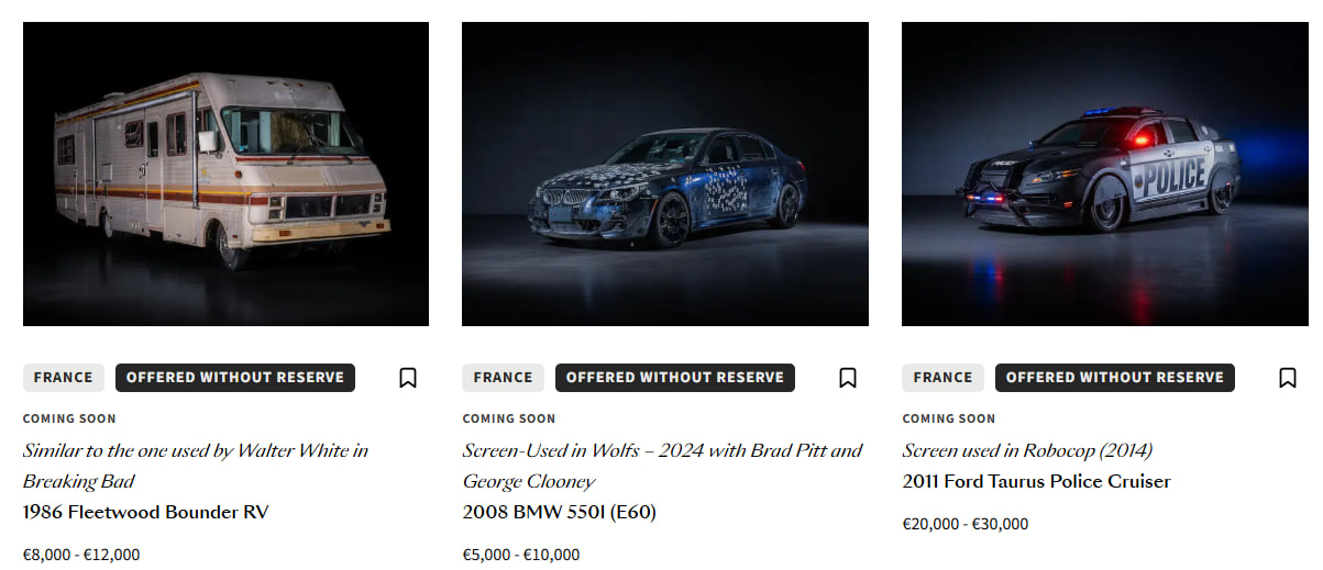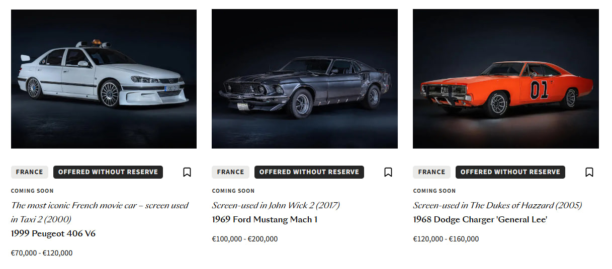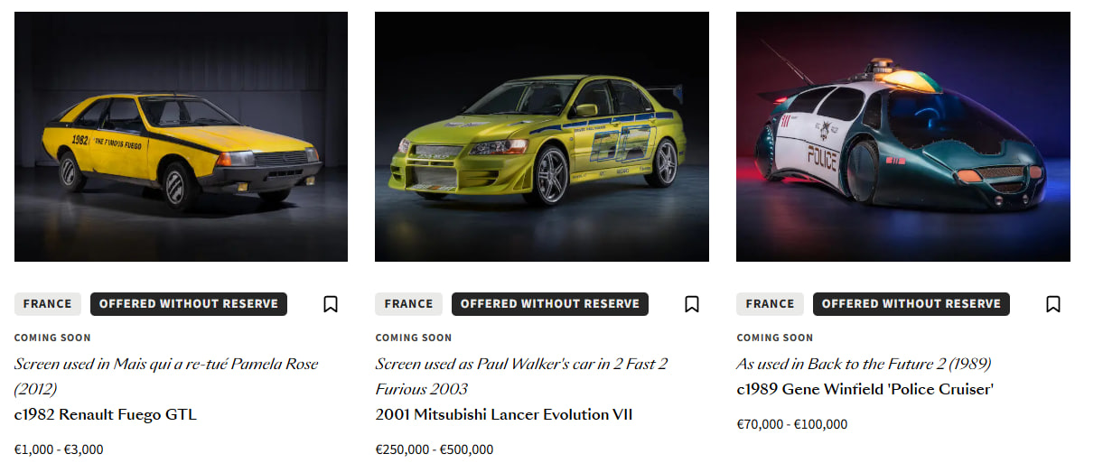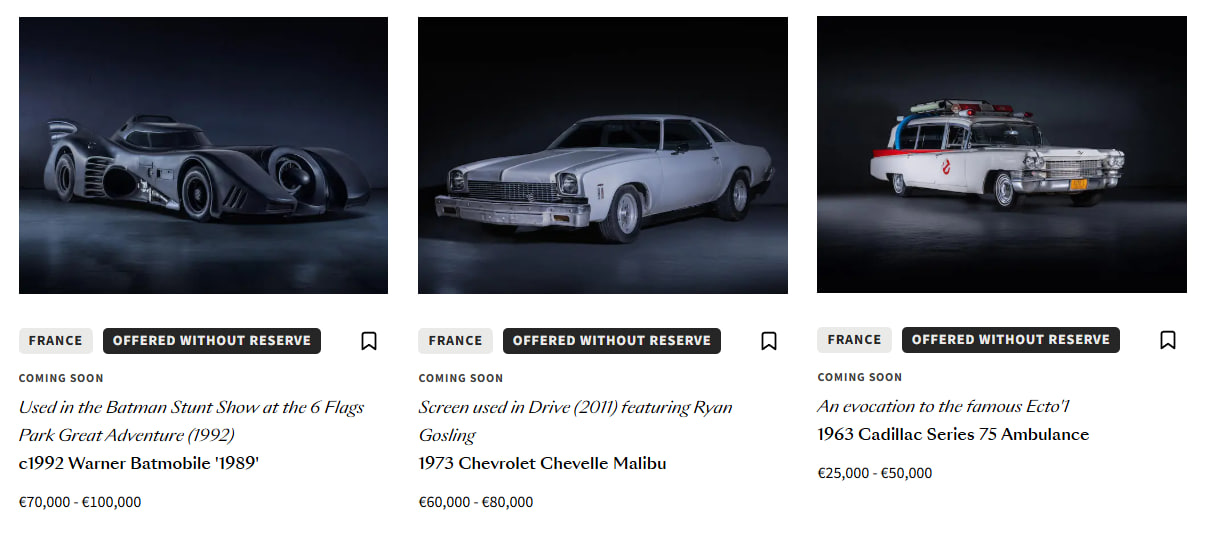 Автомобили из культовых кинофраншиз распродают на аукционе в Париже — среди них авто из «Форсажа», «Такси», «Трансформеров», «Бэтмена», «Джона Уика» и не только.