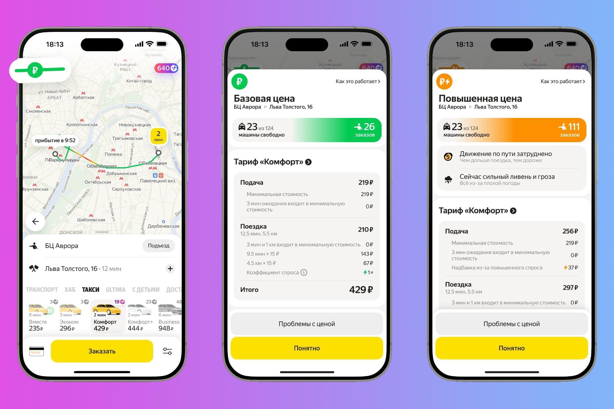 Яндекс Go теперь показывает спрос на такси в реальном времени. Видно, из чего формируется цена, сколько людей рядом хотят уехать и сколько машин свободно.